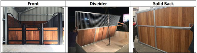 | Advantage | Full welds will make sure the stalls are strong and durable. No sharp edges promise the people and horse safe. Yoke door allows horses place his head outside. Powder Coated Finish: We can PC any color you like. Say, Black Color, Blue Color, Hunter Green color, etc. Assembly easily: use heavy duty bolts or different way connector to connect together. |